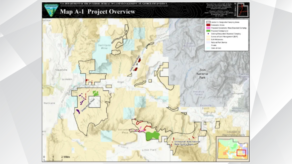 At the same time, dispersed camping would be cut back across a large stretch of public land near Zion. Only a limited number of designated dispersed sites would remain.